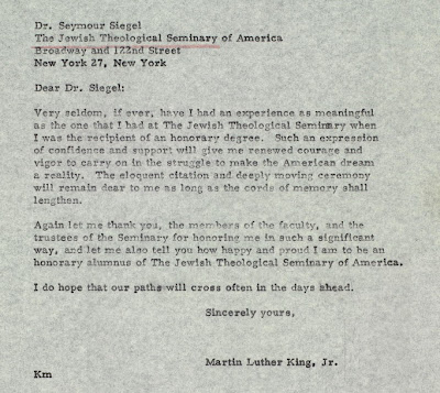 Letter from Dr. Martin Luther King, Jr. to Rabbi Seymour Siegel thanking him for his honorary degree from the Jewish Theological Seminary on July 3, 1968 |