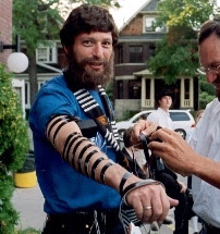 I had a chance to meet Adam Sandler in November, 1999 when he was filming “Little Nicky” on the Manhattan streets just around the corner from my apartment. Walking from 110th Street and Broadway up to the Jewish Theological Seminary at 122nd Street for morning minyan on a brisk November morning at 7:00 AM I did a double-take when I spotted Adam standing by himself on 112th Street trying to stay warm. We started talking. He told me about his brother who studied in a traditional yeshiva. After talking for about twenty minutes, he invited me to come back around lunch time to watch him shoot the movie.