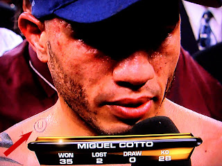 Update: Miguel Cotto got the tattoo as a gesture for a Jewish friend of his. Here’s the background story on Cotto’s kosher tattoo with video below courtesy of Elie Seckbach: